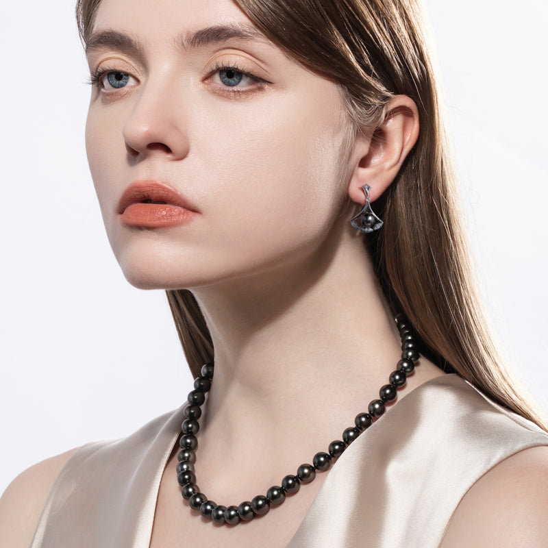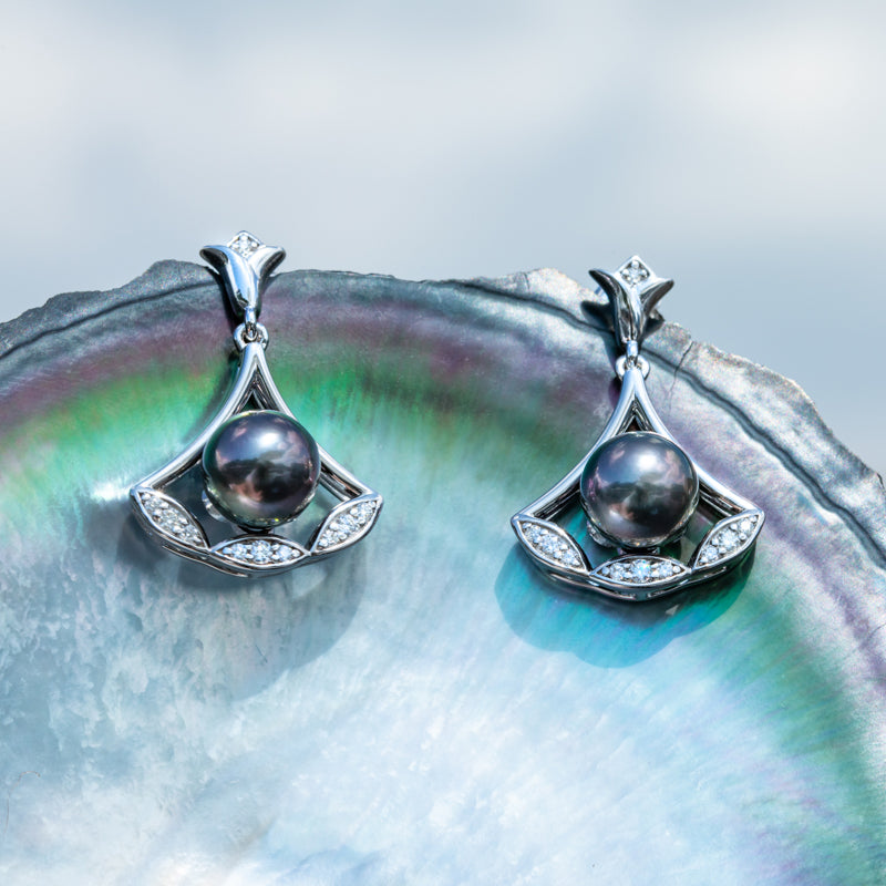 Tahiti Little Princess Black Pearl Stud Earrings 925 Silver with Moissanite