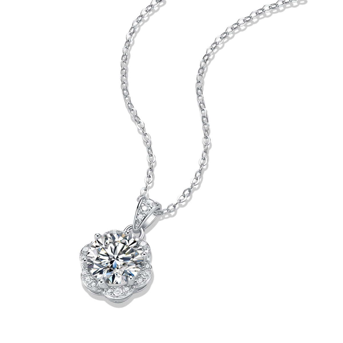 S925 Silver 18K White Gold-Plated Moissanite "Blooming Heart" Necklace