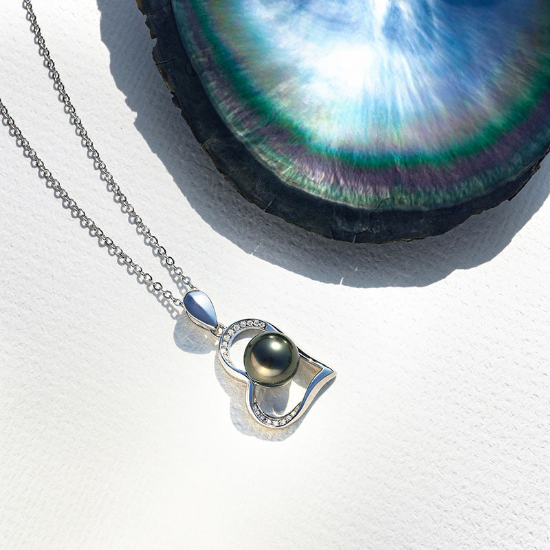 Tahiti Black Pearl Heart S925 Moissanite Pendant