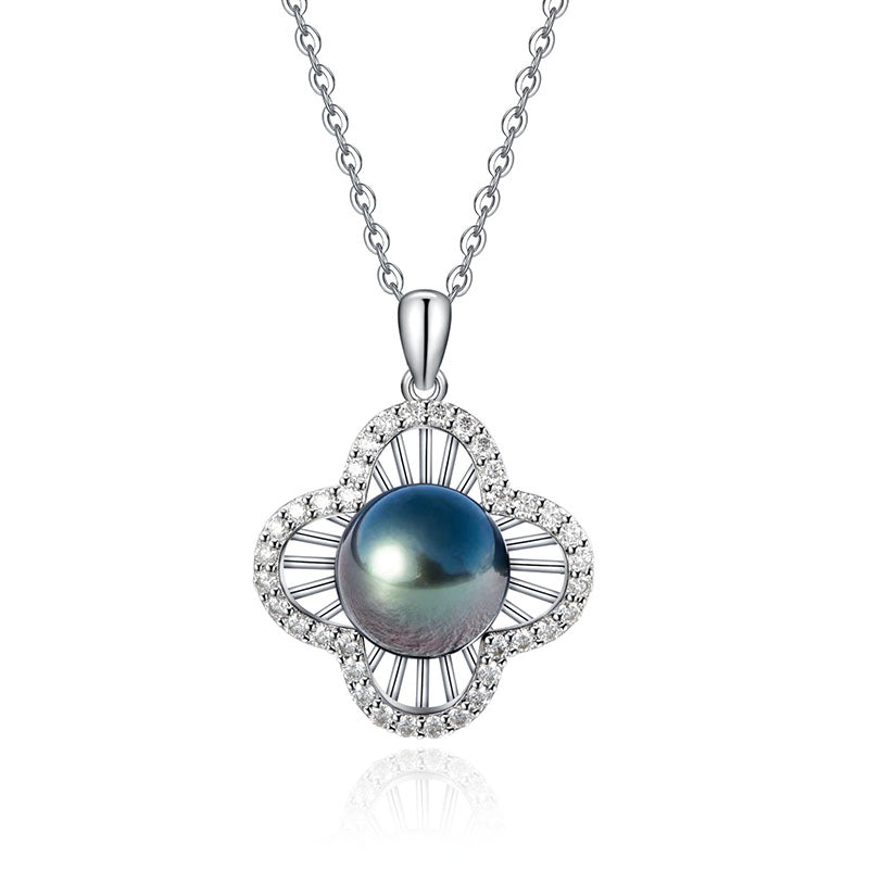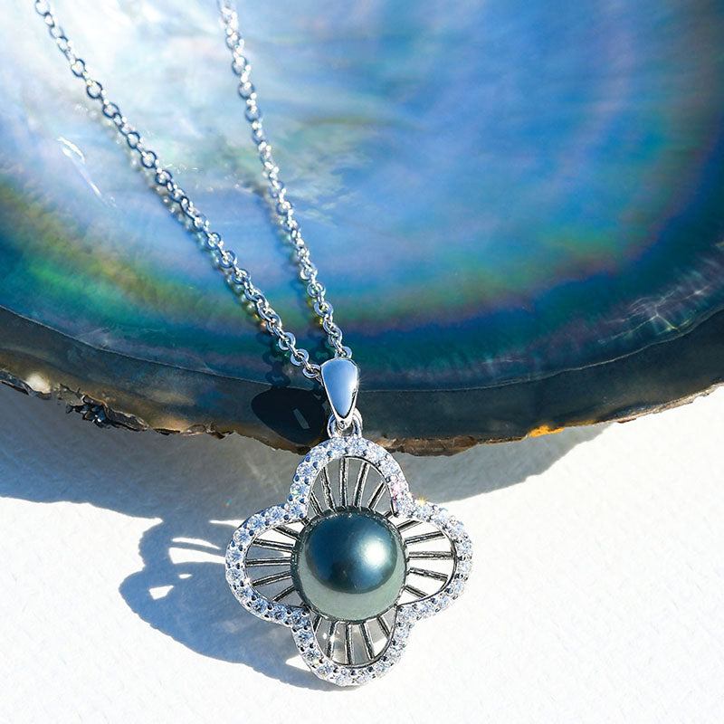 Tahiti Black Pearl Four-Leaf Clover S925 Moissanite Pendant