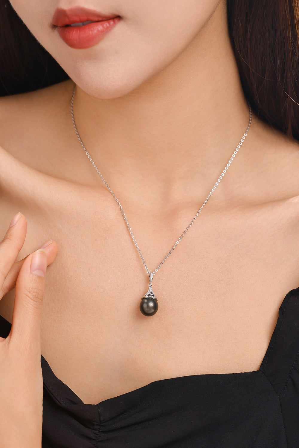 Tahiti Black Pearl Teardrop-shaped Pearl S925 Moissanite Pendant