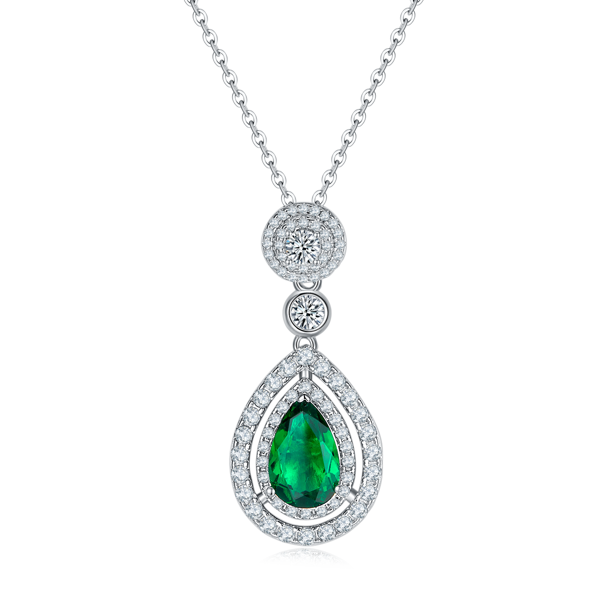 Pear-Shaped Cultured Emerald S925 Silver Platinum-Plated Necklace