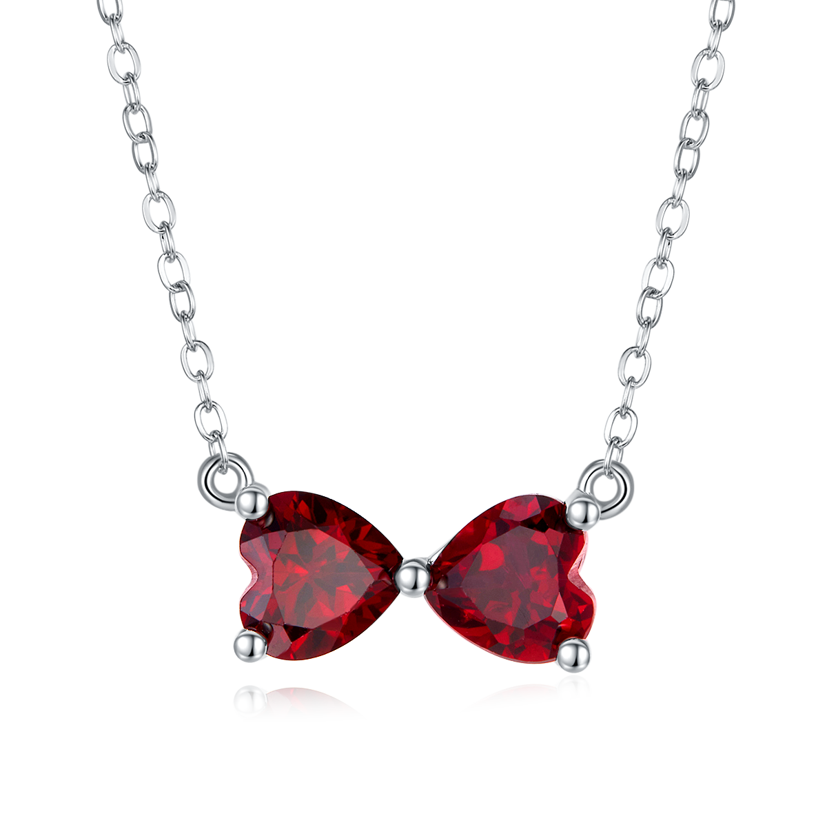 Heart-Shaped Cultured Ruby S925 Silver Platinum-Plated Necklace